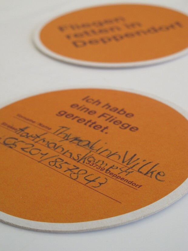 Aus den mehreren hundert Bierdeckeln wurden zwei gezogen: Bei den Kindern war es Thyra Linn Wilke (7), bei den Erwachsenen Ulrich Höne (63). Der Hauptpreis bei den Kindern ist ein Wochende im Europapark Rust mit der ganzen Familie, bei den Erwachsenen ein dreitägiger Wellnessurlaub mit Begleitung und einer der geretteten Fliege im zur Zeit weltbesten Familenhotel in Elmau bei Oberbayern.
