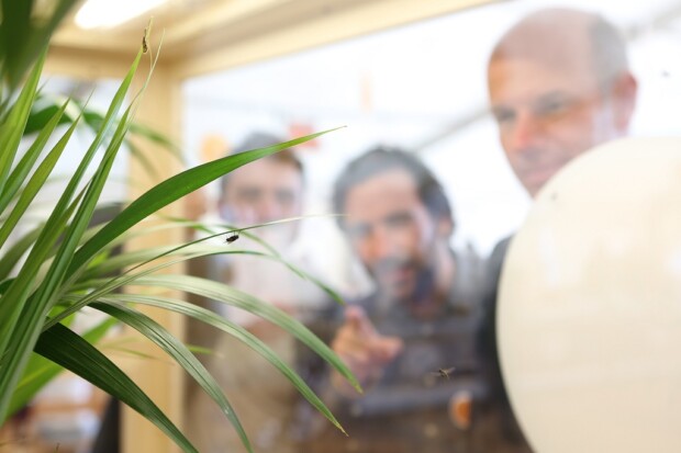 Wenn die Augen zu schielen beginnen, dann ist man nicht fern von einer „Meldestelle für Fliegenbegutachtung“. Unser Biologe Stephan Liersch nimmt es sehr genau. Hierfür benutzt er nicht selten seine Lupe, mit der er genau identifizieren kann, ob es sich auch wirklich um eine Stubenfliege handelt. Fotos: Reimar Ott (dpa)